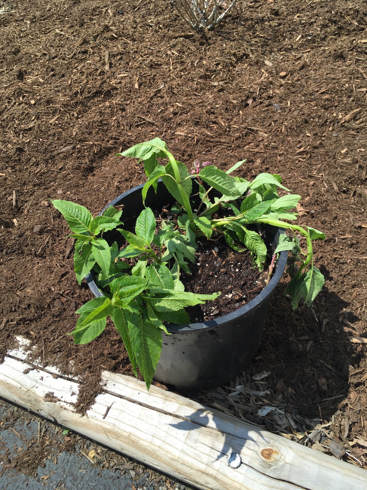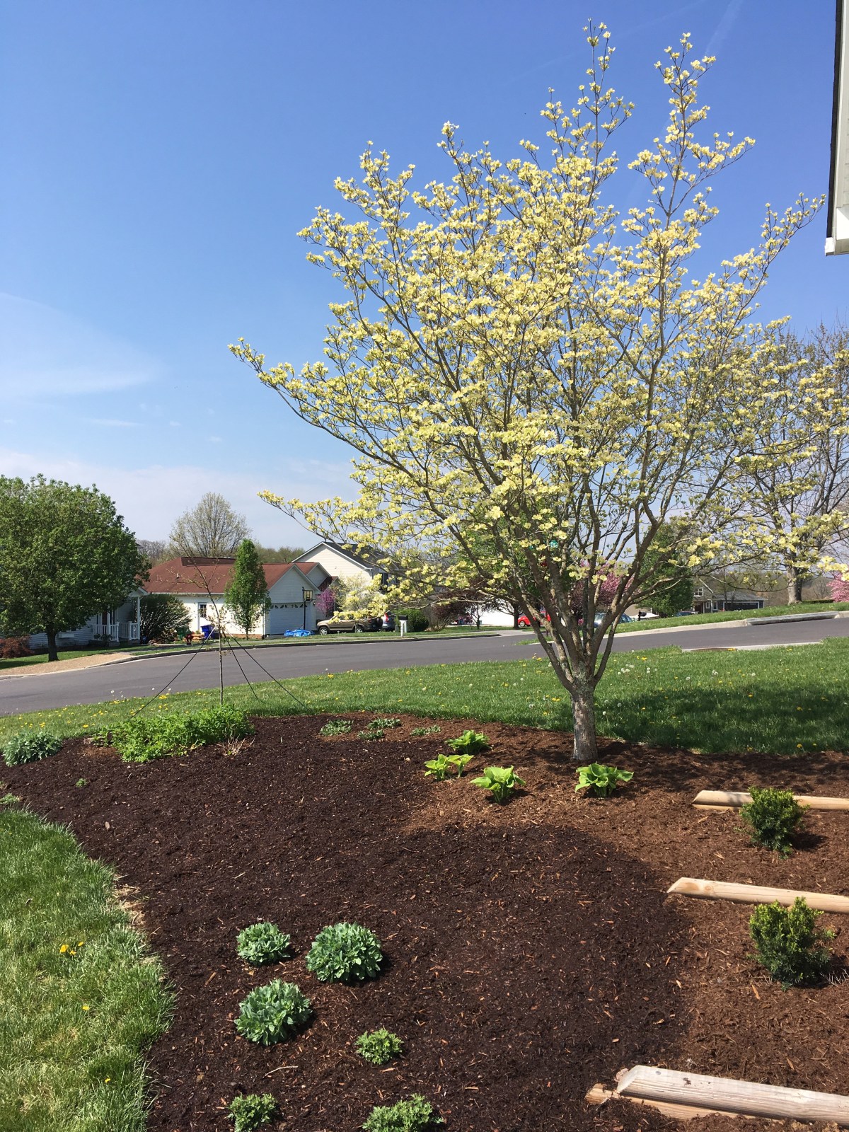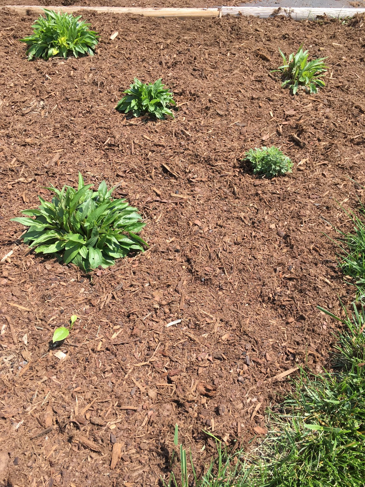 Moved bottlebrush from herb bed to wildflower hillSwamp milkweed is emergingTransplanted bee balm and mint for our front door potSome seedlings from wildflower mid are emerging by the mailboxWhat’s left of 6 yds of mulch after mulching all the beds; need to do side of house and under stairs.Echinacea volunteer, bottom leftDogwood and front bed, mulchedPlanted roses and columbine today; mulchedIs this Joe Pye emerging?
