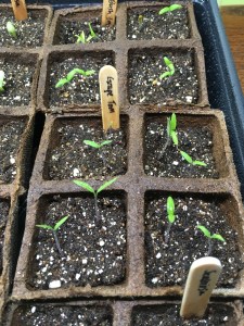 March 11: tomato, Mex SF, and Scabiosa seeds sprouting