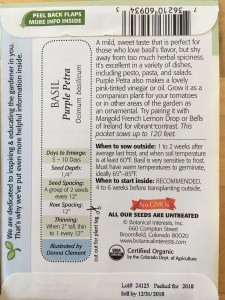 back of purple basil seed packet