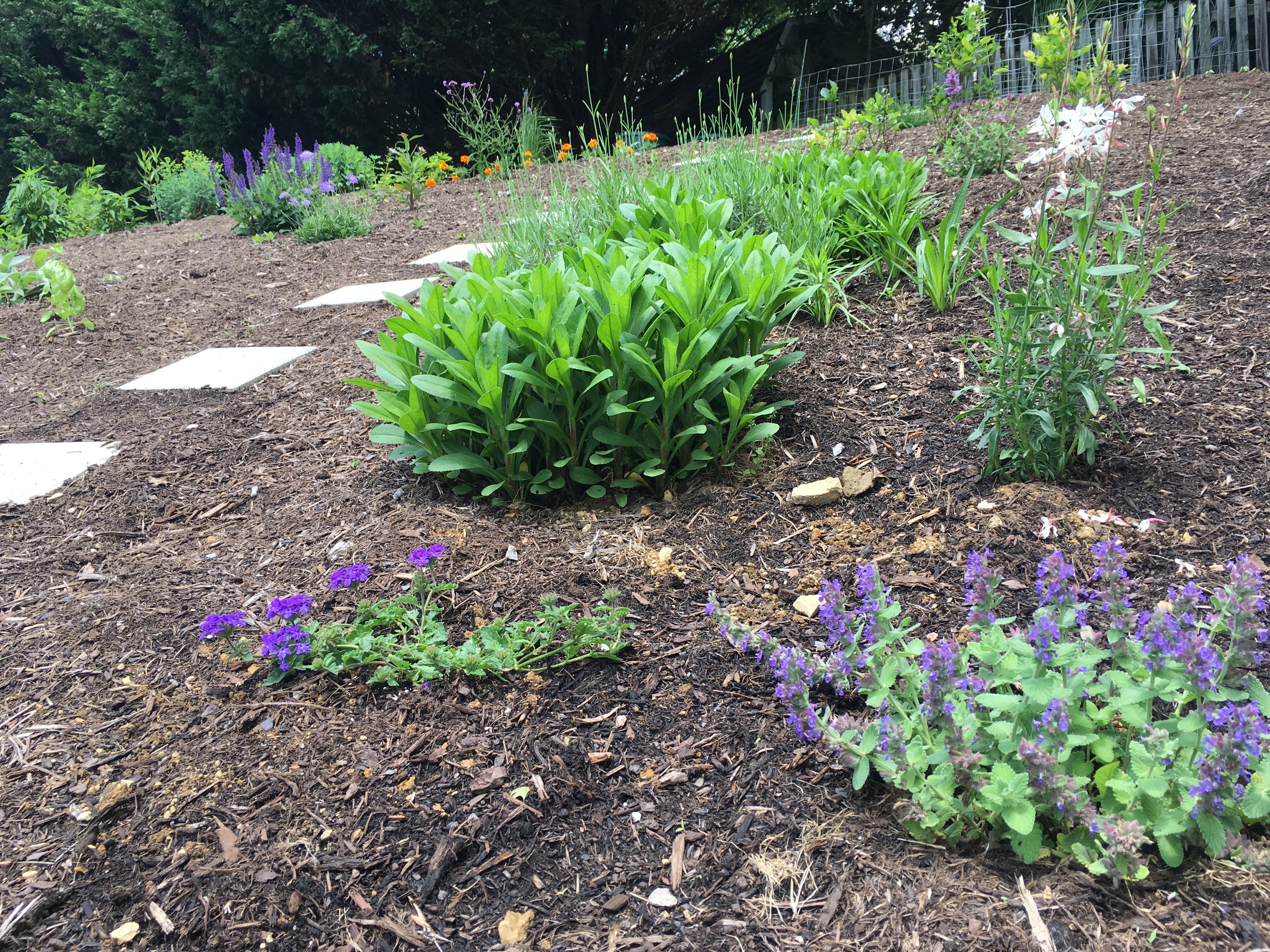 cat mint, white gaura, verbena back hill
