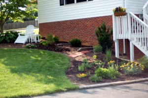 June 3: front bed do-over. Thanks deer. Also, ornamental grasses 😍.