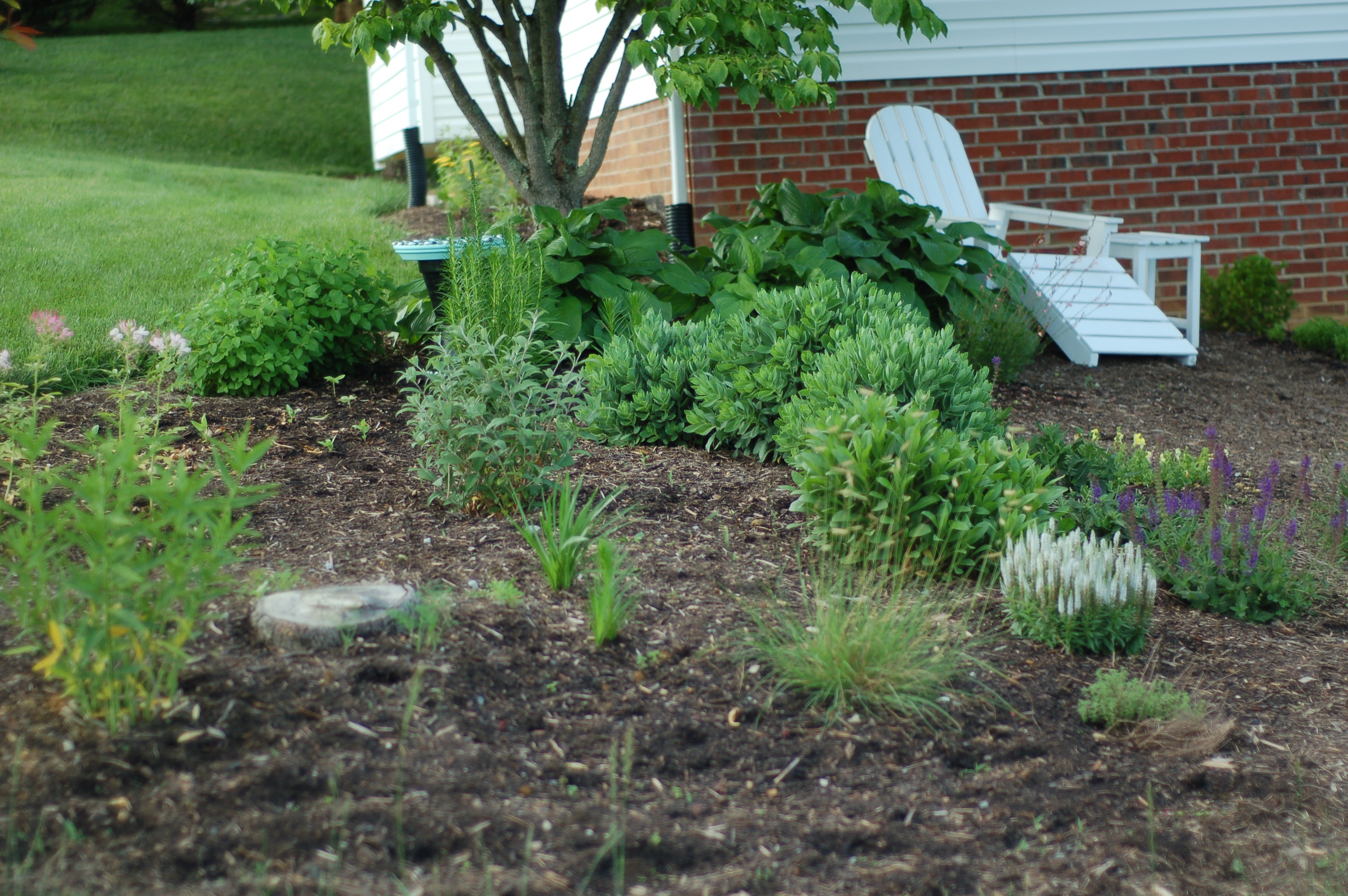 June 3: front bed do-over. Thanks deer. Also, ornamental grasses 😍.