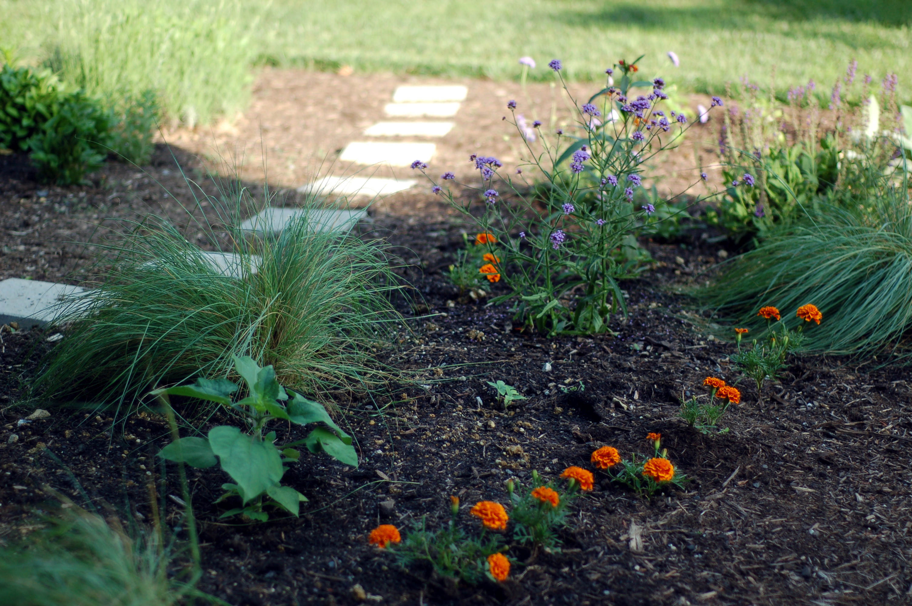 June 3: front bed do-over. Thanks deer. Also, ornamental grasses 😍.