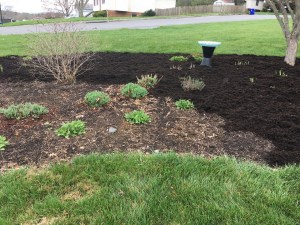 April 10: Two tons of mulch spread. And I got a spicebush!