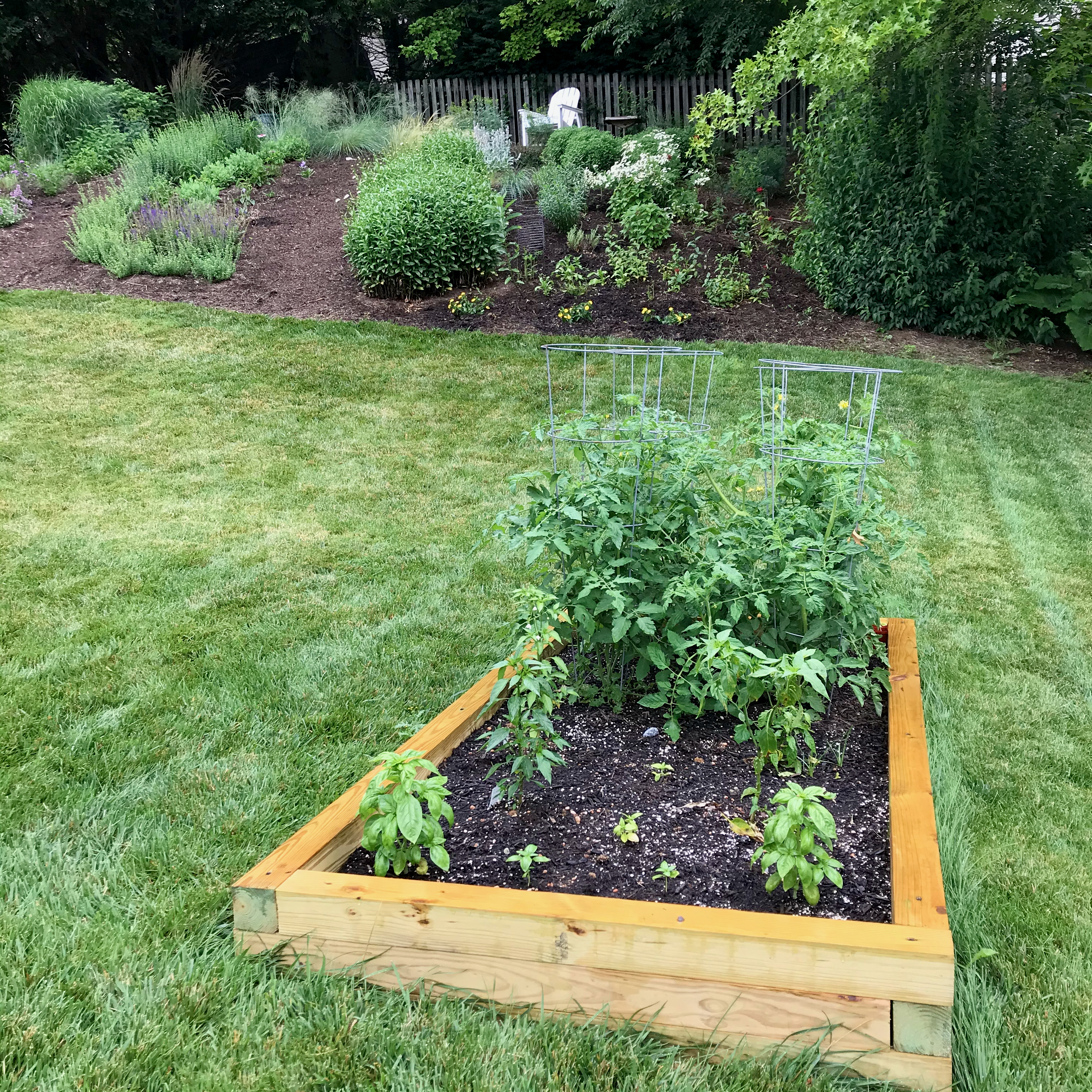 Today was a perfect day to move plants around and to spend a good amount of time in the garden: the temperature was about 72 ℉ with a light drizzle all day long. I transplanted a few plants, including two Russian sages, refilled our flower boxes, and planted lantana and artemisia, all without worry of shocking them by planting them in the heat of summer.