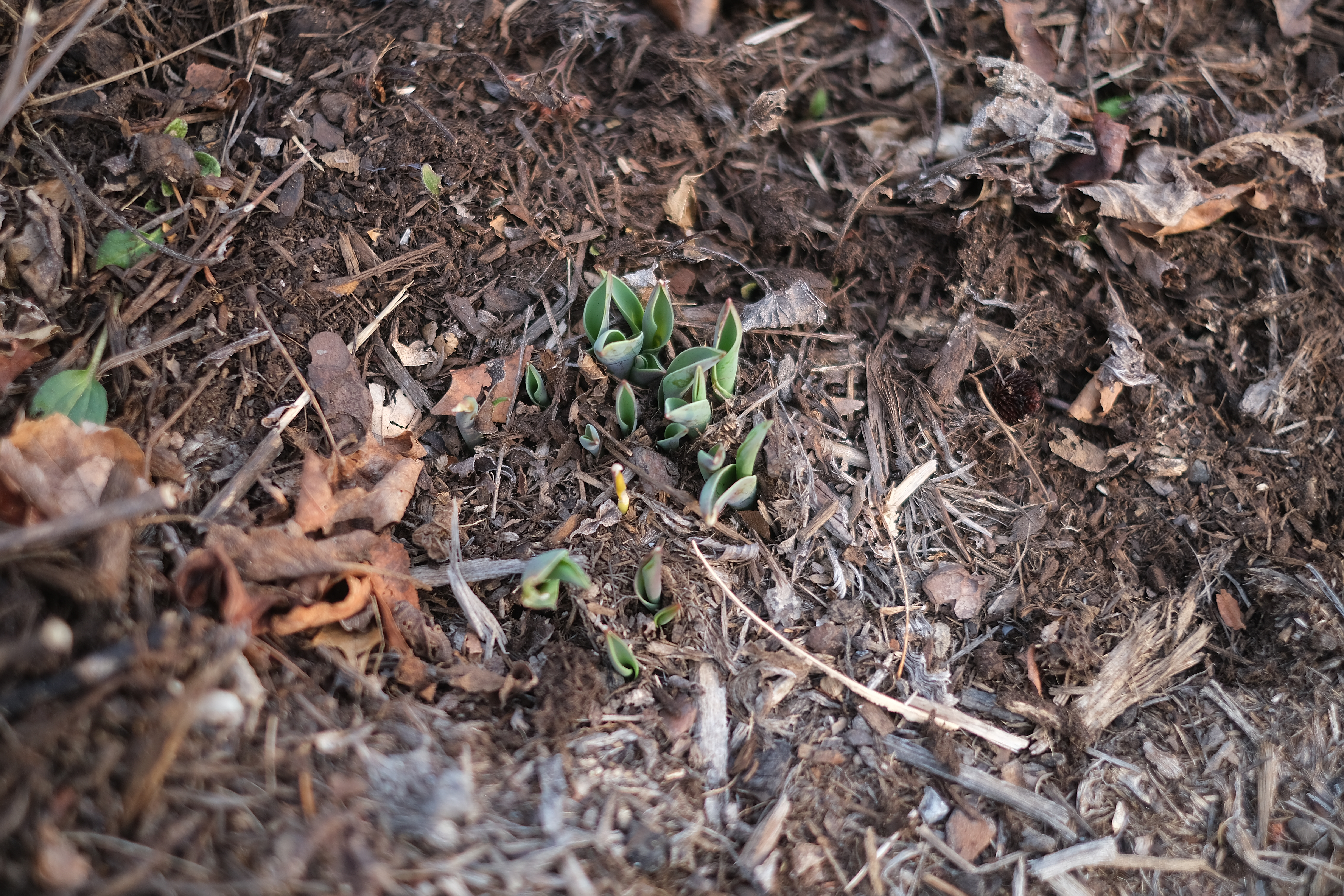 As I worked, I smelled fresh mint in the mint patch. I listened to birds chirp and leaves rustle in a warm breeze. I was surprised by the first forsythia blossom. When I pulled away dead debris and raked out leaves that have insulated the ground these last 5 months, I found leaves emerging underneath – sedum, tulips, columbine, goldenrod.