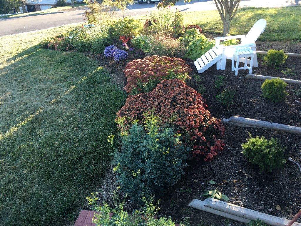 For now, I’ve got my slippers on and am sipping coffee from the chair by the window. Leaves shiver on the pear trees across the street, maple branches swing, and coneflowers and salvia nod in the wind. I’ll plant the mums when my cup is empty.