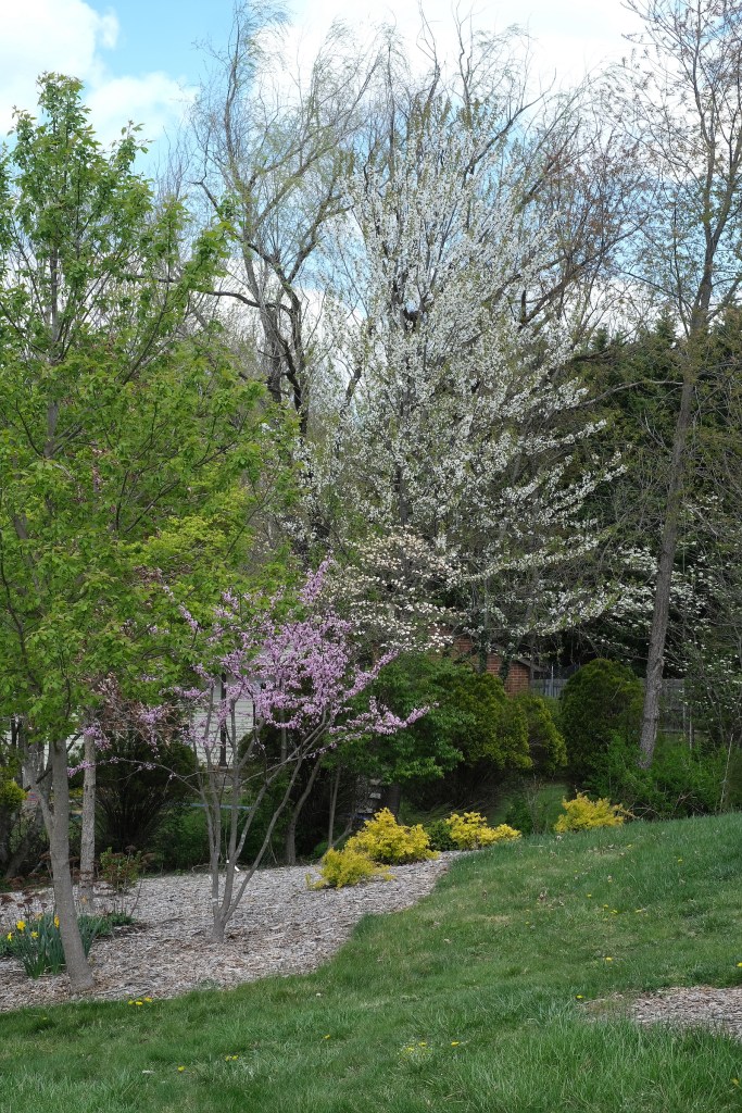 I went for a walk around the neighborhood today. Pink and magenta redbuds contrast with the chartreuses of fresh leaves. The earth is lush and coming back to life.