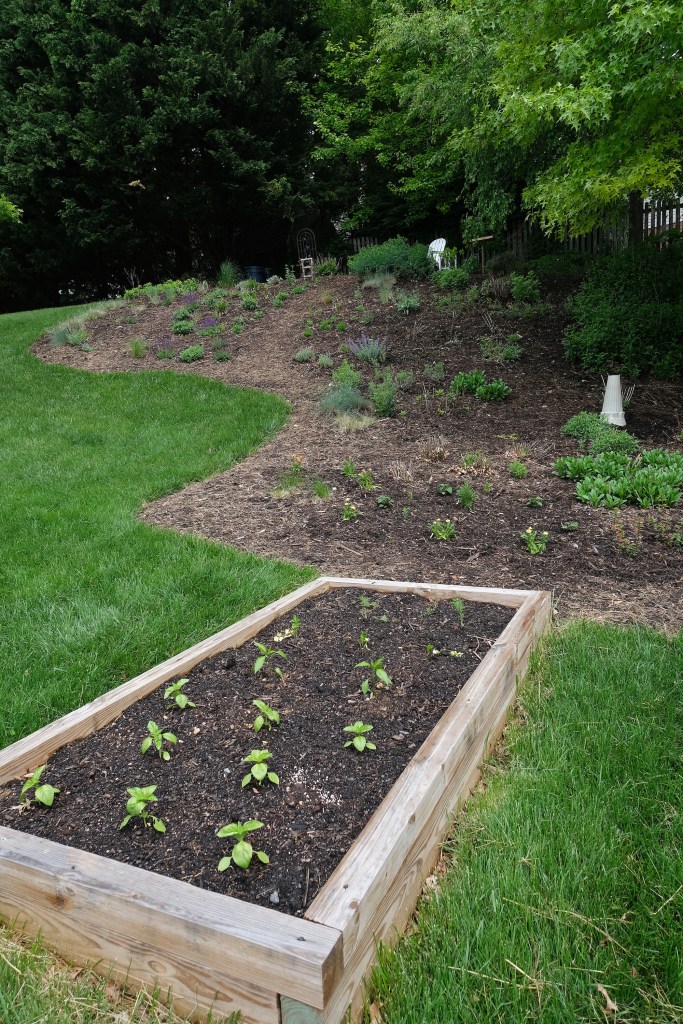 I’m still waiting for the beds to fill in — I delayed a lot of growth by moving everything around over the winter. I hope it didn’t permanently damage stuff, and I hope I have the patience this coming winter to leave everything alone so it can re-establish. Maybe things will fill in more by July and August. We’ll see. That’s one reason for posting these status updates with pictures, so I’ll have a comparison next year.