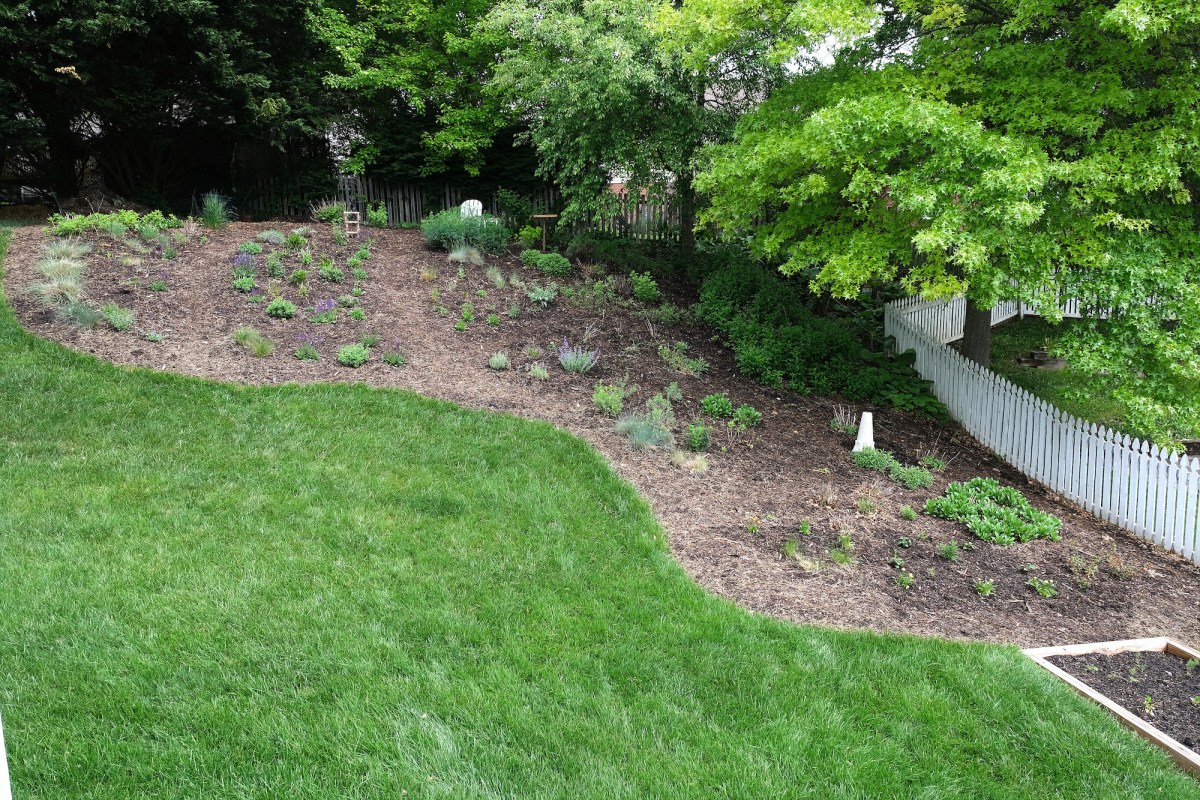 I’m still waiting for the beds to fill in — I delayed a lot of growth by moving everything around over the winter. I hope it didn’t permanently damage stuff, and I hope I have the patience this coming winter to leave everything alone so it can re-establish. Maybe things will fill in more by July and August. We’ll see. That’s one reason for posting these status updates with pictures, so I’ll have a comparison next year.
