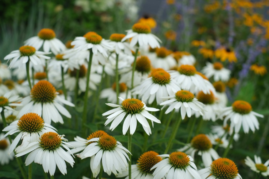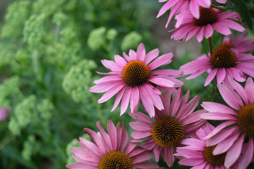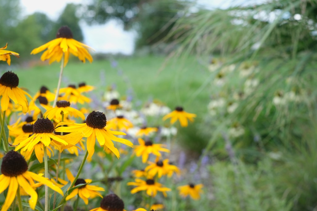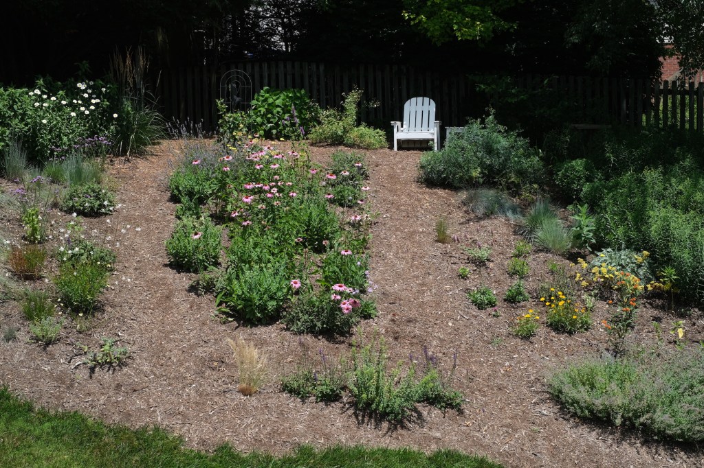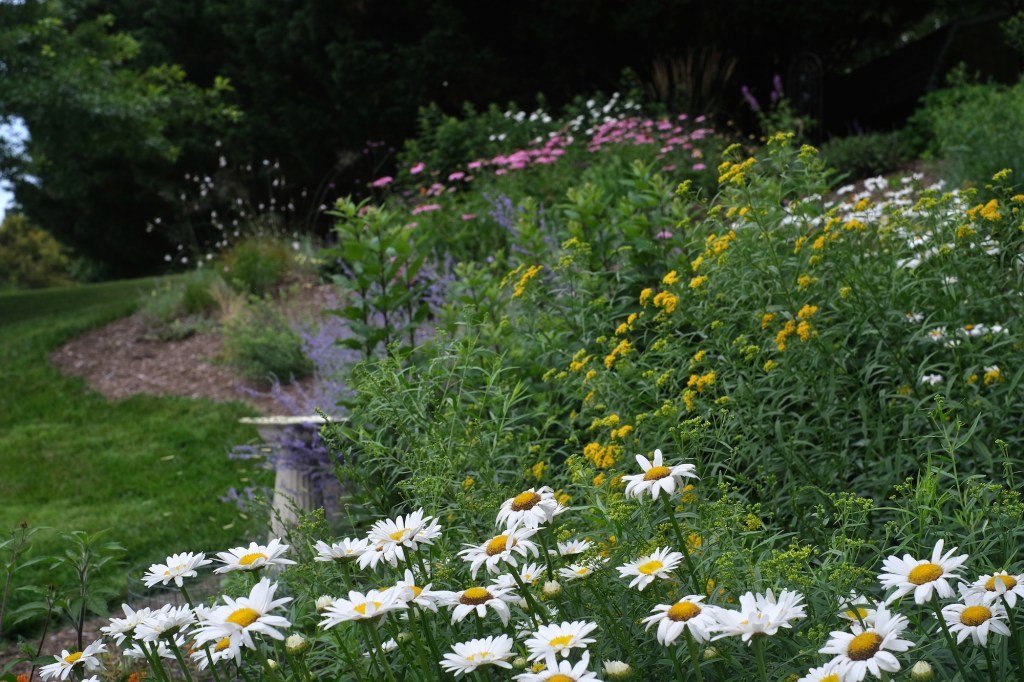 The late summer flowers are in bloom — rudbeckia, echinacea, goldenrod — and zinnias are flowering where I let their seeds fall out back last year. The lavender in front never really recovered this year; I think I’ll replace it with mums.
