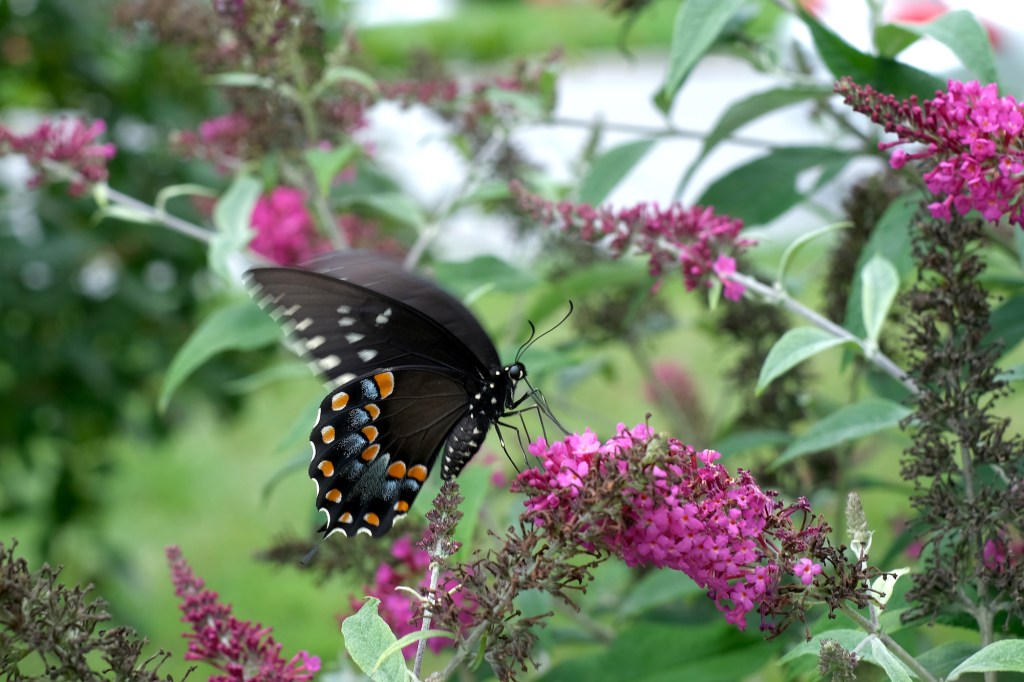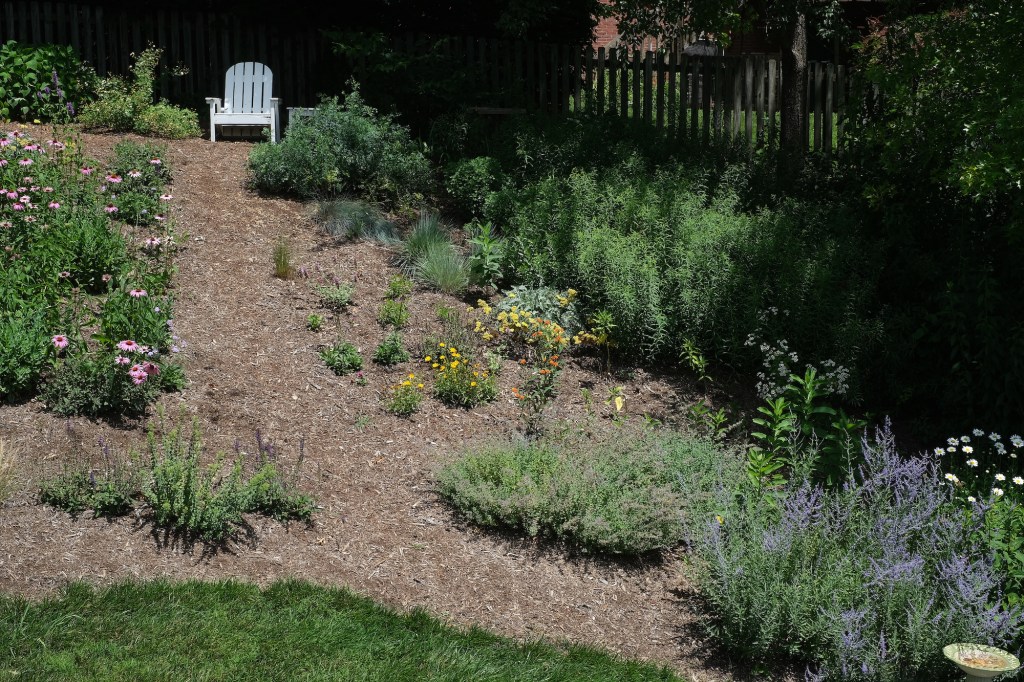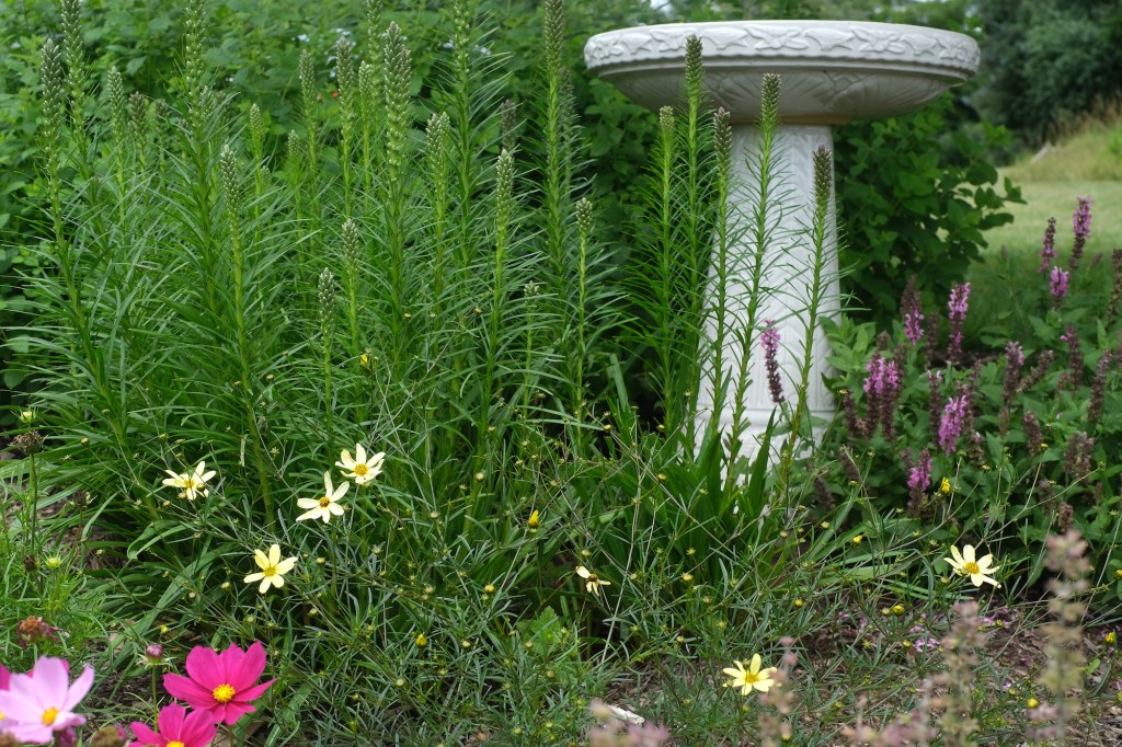 When I watch the garden from my office window, I often see large swallowtails out there now, and I found a couple of fat caterpillars on the rue. The rabbits are getting my milkweed (and liatris) out back; I hope there will be enough for the monarchs. The back beds need another year to fill in after I moved so much stuff around this winter.