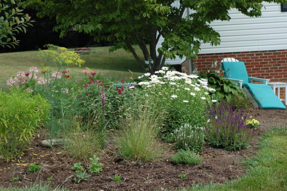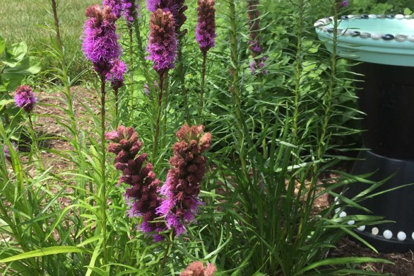 June 3: front bed do-over. Thanks deer. Also, ornamental grasses 😍.