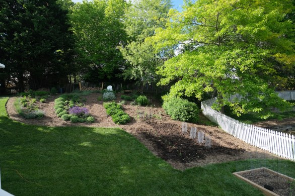 May 15: new bed is planted! And scabiosa and verbena are blooming