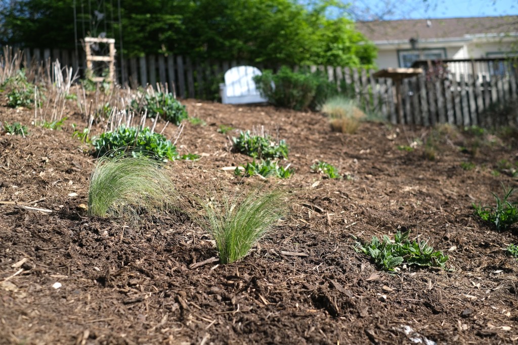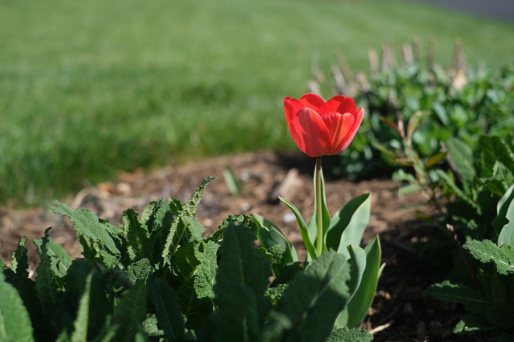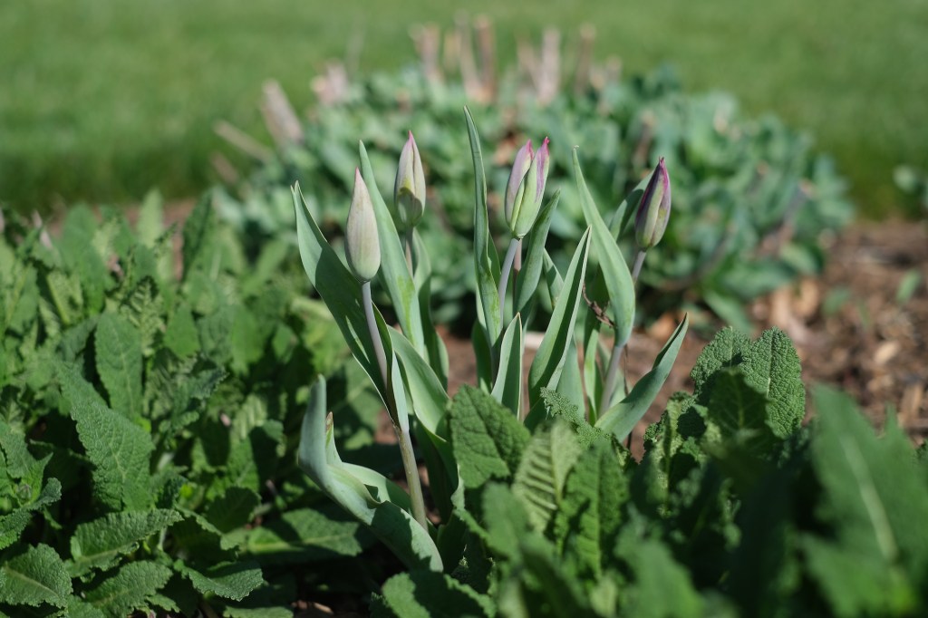 The grass is greening, more perennials are starting to push up leaves, and the dogwood, redbud, and first tulips and salvias are blooming.