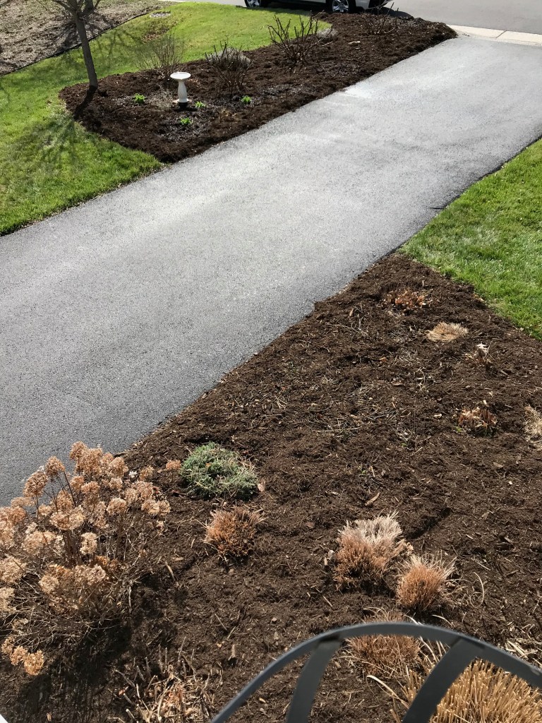 Front before mulchFront mulchedRose bed before mulchRose bed mulchedFront lobe before mulchFront lobe mulchedBack bed before mulchBack bed with last of first mulch pile